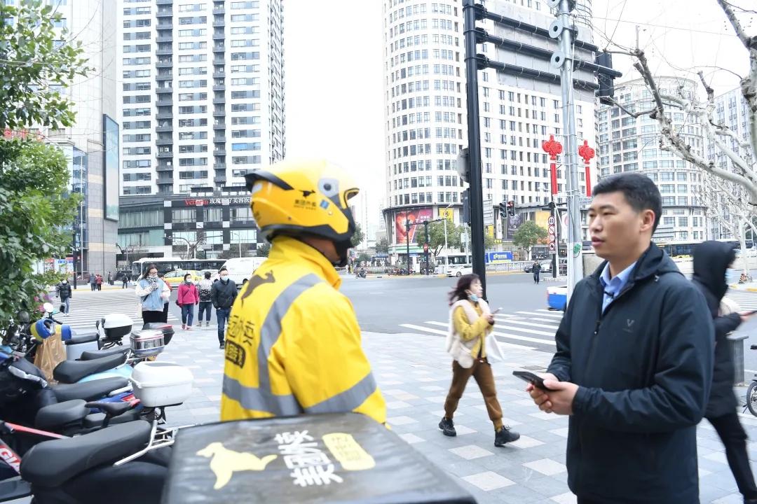 繁华的上海街头,人流如织。外卖员、快递员来回穿梭。他们车上装的是其他人的生活,也承载着他们自己的生活。