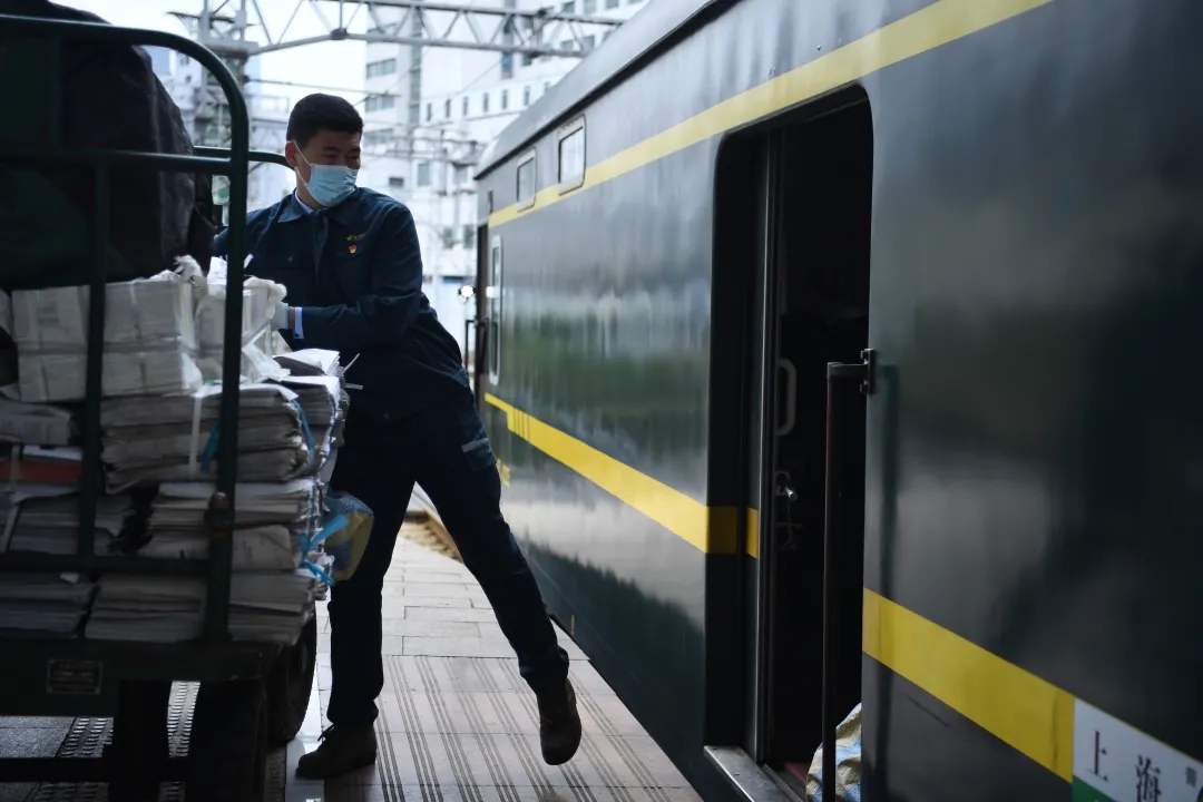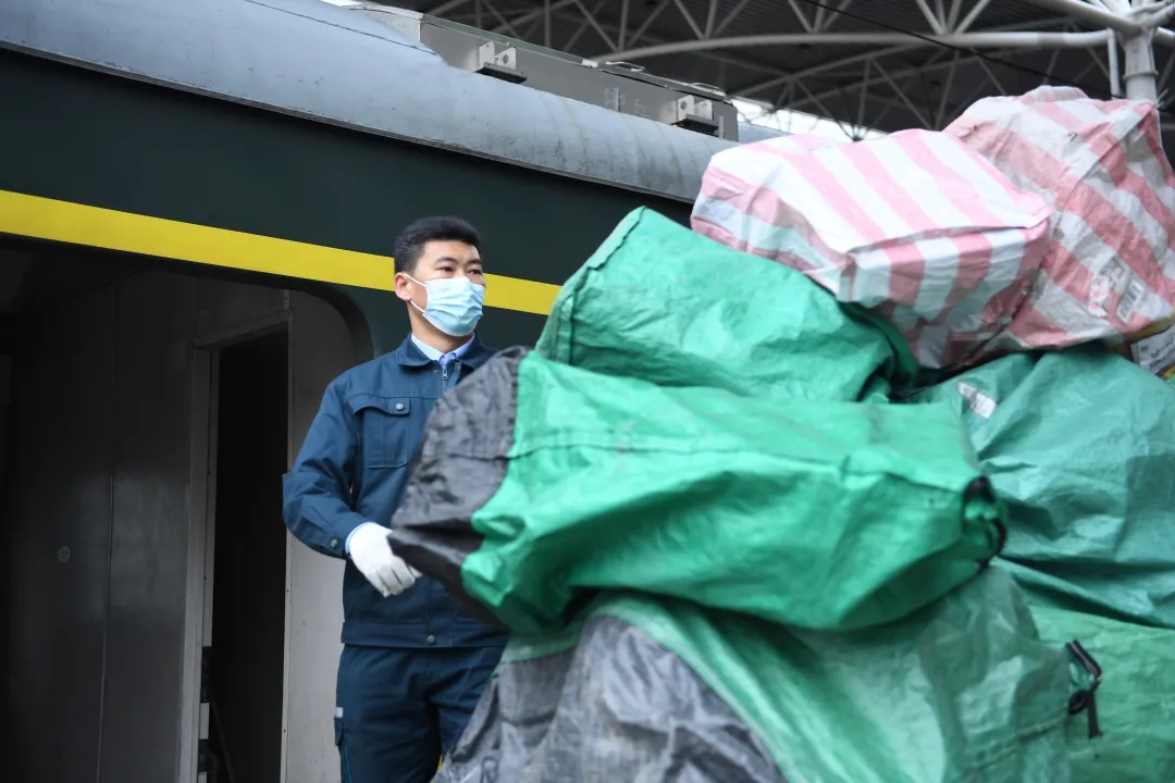 抬起重重的挂柄,脚部用力蹬地,一手抓住车身,一手拉起挂柄,拖车离车厢仅有5米距离,却要柴闪闪用尽全身的力气才能拉过去。装卸完三车邮件,在零下3摄氏度的气温下,柴闪闪的额头已经冒汗。虽然已经调整到了接发员岗位,但人手不够时,柴闪闪还会到月台上干老本行。