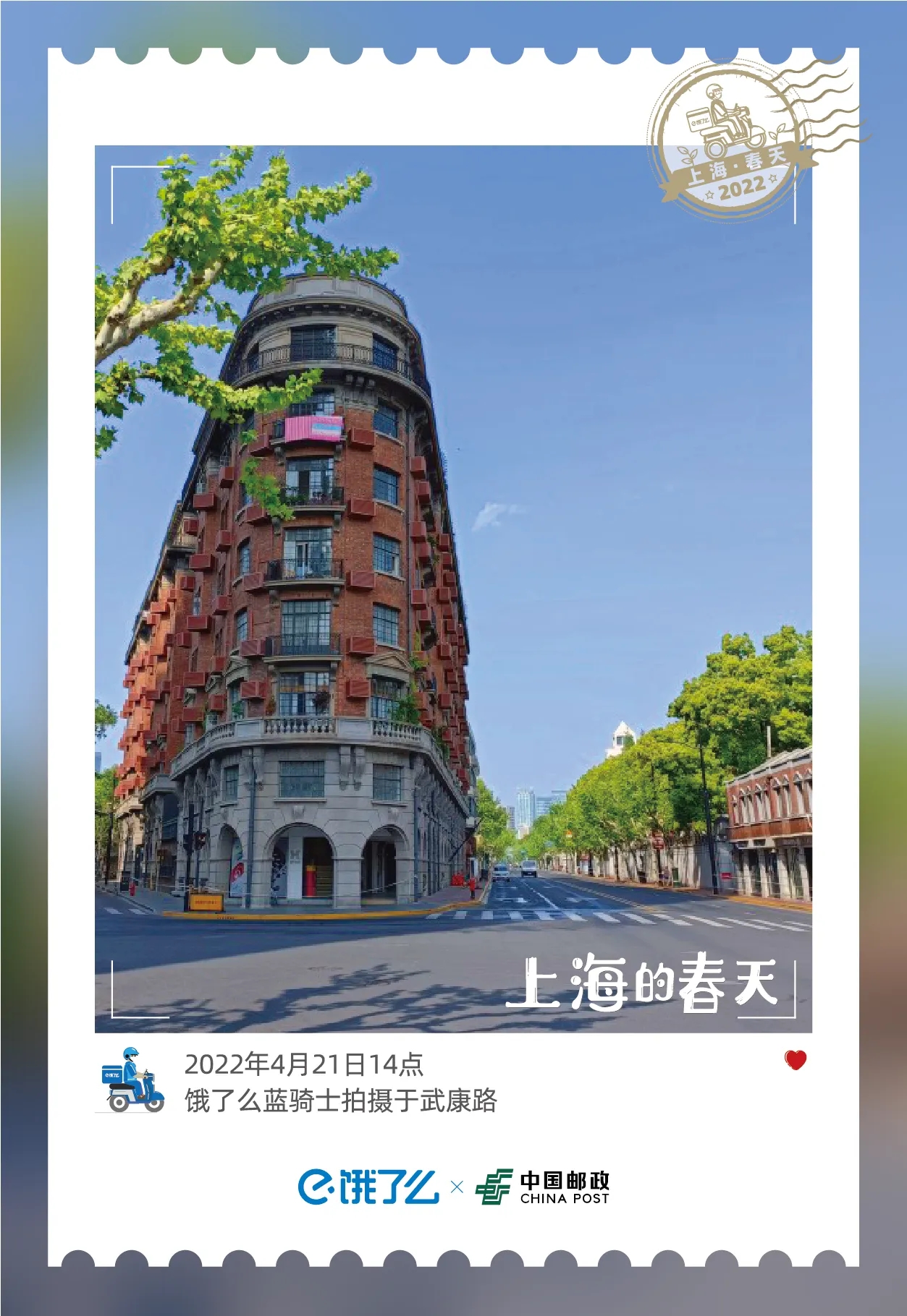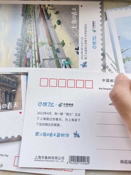 小小一张明信片是一个很神奇的载体,它记录瞬间,传递美好与信念。从一张明信片提炼出“治愈感”,山河依旧,水木清华,在这些全民同心努力守望春来的日子里,中国邮政携手饿了么,通过明信片的形式“把上海的春天‘袋’给你”,永久纪念上海2022年这个特殊的春天。