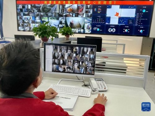 湖南省湘潭县养老服务信息中心工作人员在工作中(2021年12月2日摄)。紧急情况下,养老服务信息中心能为佩戴智能手环的老人提供及时服务。新华社记者 苏晓洲 摄