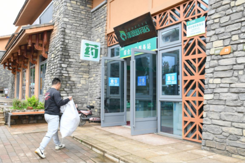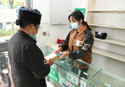 今年初,昭觉县邮政分公司成功与马大姐达成协议,在社区药店叠加邮政服务,这里成了社区首家邮政综合便民服务站点。