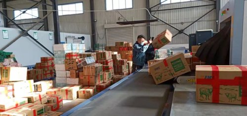这是记者在宁夏回族自治区盐池县盐州商贸城见到的邮政寄递服务繁忙的景象。这种繁忙正是盐池羊肉产业愈发繁荣、百姓生活更加幸福的缩影。
