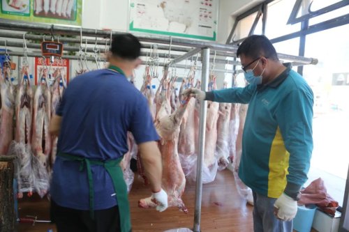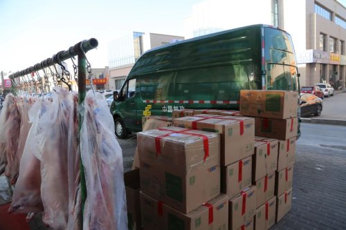 在盐州商贸城,曹忠岐经营的牛羊肉批零店铺是生意最旺的店铺。尽管时值盛夏,但每天他依旧有20个羊肉电商包裹要发出。记者到访时,他正忙着分割羊肉。一旁,盐池邮政揽投员马建琨正在帮忙将分割好的羊肉打包、装车。马建琨指了指门口的邮车说:“现在我们的速度很快,这一车中午前就能寄出去。”