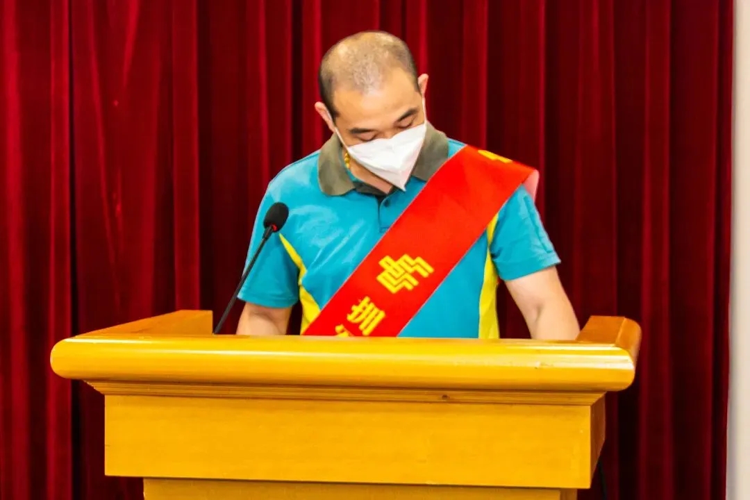 △投递员代表向全体邮政志愿者发出倡议:争当拥军优属的倡导者、军民融合发展的实践者、打造金山邮政特色拥军品牌的推动者。