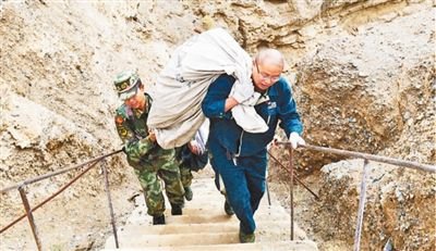 上桥,有两条路线:一是开车走盘山“搓板路”,路远难行还危险;二是徒步爬一条直通桥上的水泥台阶,150级,坡度近70度,被执勤部队官兵形容为“天梯”。高海拔下,二十来岁的年轻战士,走“天梯”都会头晕目眩,而1976年生人的葛军,为节省时间,每次都选择扛着邮包往上爬。