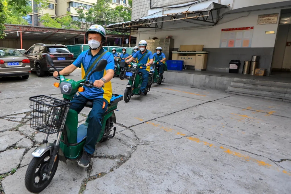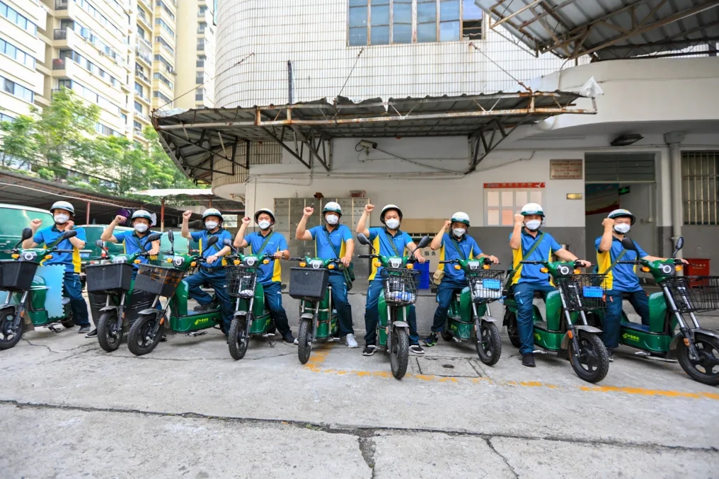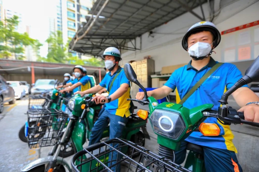 △今天清晨,上海邮政4000余名投递员统一出发投递