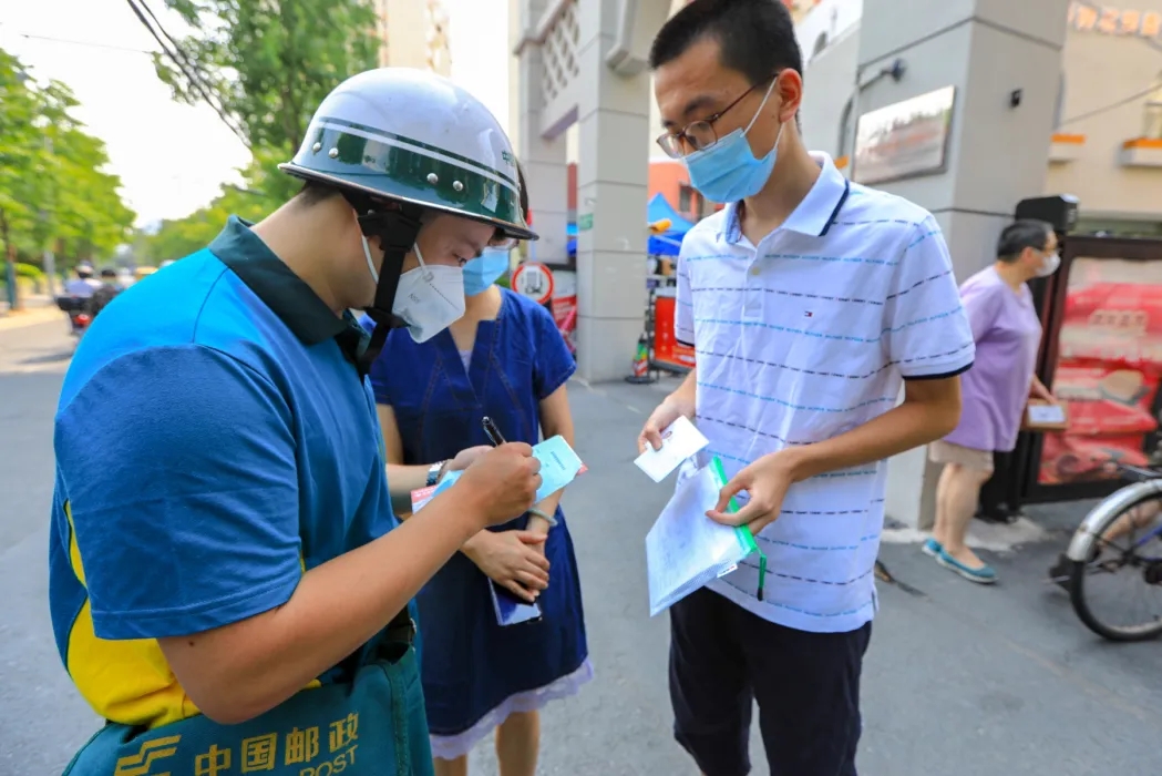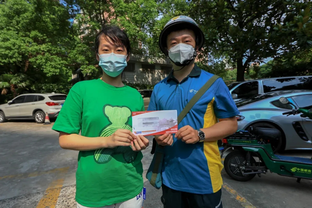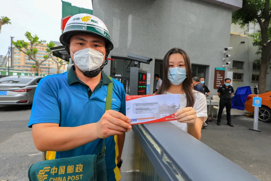 即日起,上海的莘莘学子们已经陆续收到了邮递员们投送的2022年高考成绩通知单。