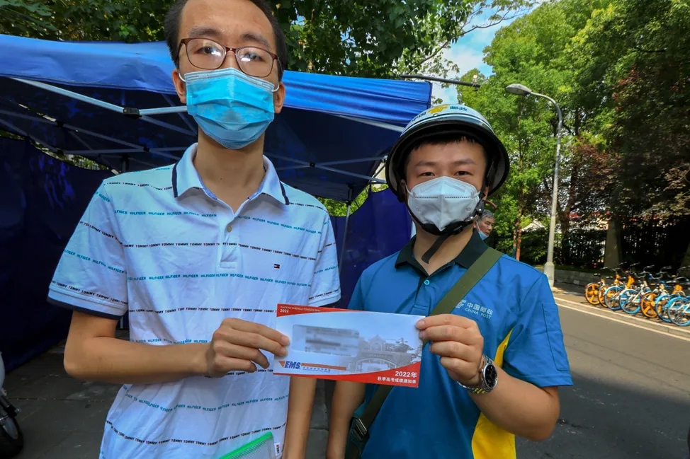 今天(7月24日),上海地区5万多名参加2022年秋季高考的莘莘学子们都陆续收到了由上海邮政EMS专递的高考成绩通知单。