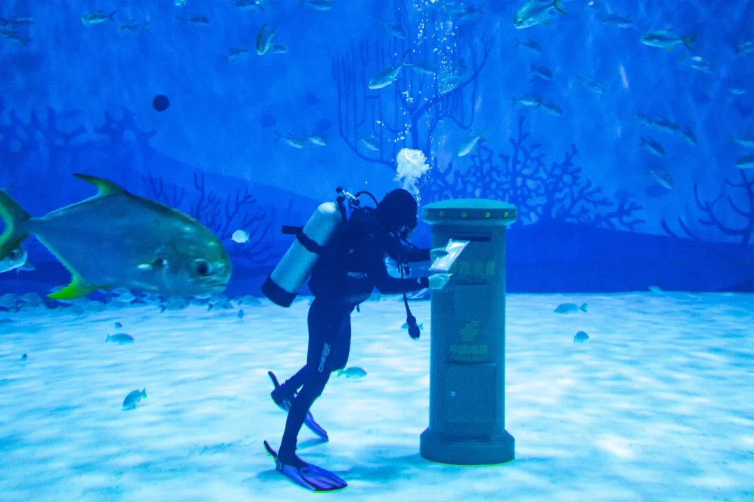 上海海昌海洋公园作为2022年第二届(上海)书信文化节活动的参与支持单位之一,日前举行了一场与众不同的水下信件投递活动。