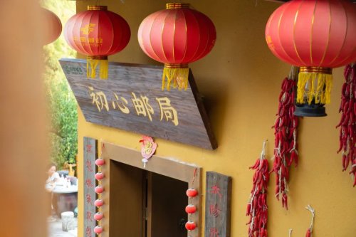 独栋的房子,墙面装饰着一个大信封,边上写着“先吃黄连苦 再享蜂蜜甜”的标语,这里即是游客们都爱拍照打卡的初心邮局。作为小院里的一抹独特风景,初心邮局也成为当地研学线路的重要教学点。