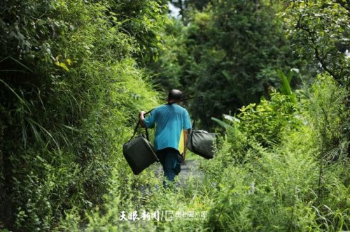 皮肤黝黑发亮,双鬓、胡须微微泛白,额头纹、眼角纹在微笑间清晰可见,双目炯炯有神,步伐稳健干练——见到眼前这位扎根于贵州偏远山区35年的退伍老兵张林昌时,他正在锦屏县河口乡裕和村给村民送邮件。
