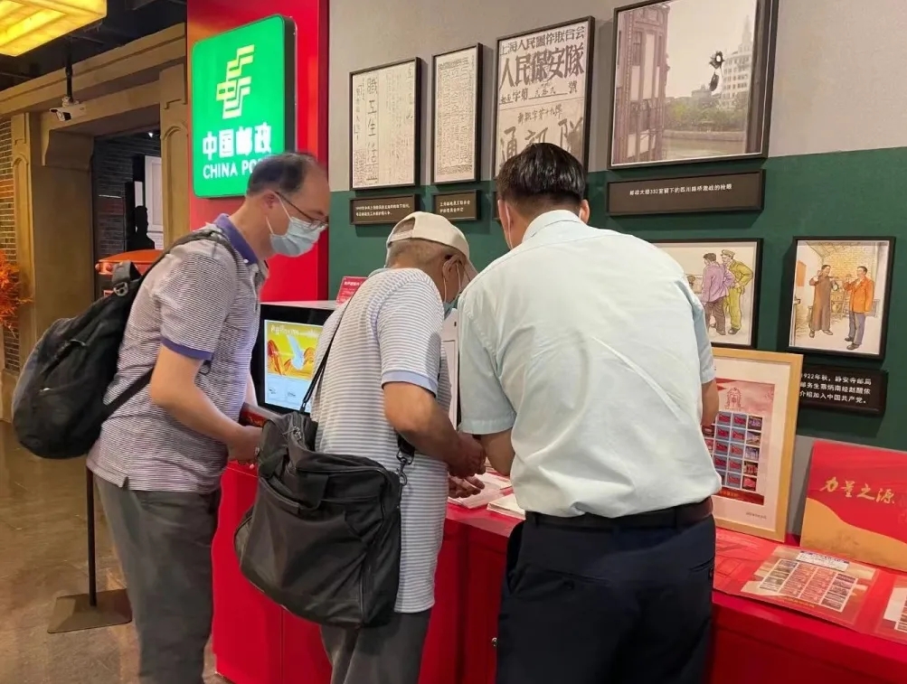 “中共四大主题邮局开馆以来,迎接了不少市民和邮迷。大家在参观四大纪念馆、接受红色教育的同时,通过购买邮品、纪念品,把自己的所思所感记录下来,寄予亲朋好友。”虹口区邮政分公司中共四大纪念馆主题邮局负责人沈华介绍,中共四大主题邮局自去年9月30日正式揭牌以来,受到了来访者的广泛欢迎。主题明信片、纪念邮戳、邮政文创产品、有声明信片机……主题邮局的相关纪念品,将馆内的红色资源和革命基因与邮政特有的IP资源有机融合,“在参观之余选购一份‘绿映红’的产品”已然成为了许多来访者的“打卡首选”。