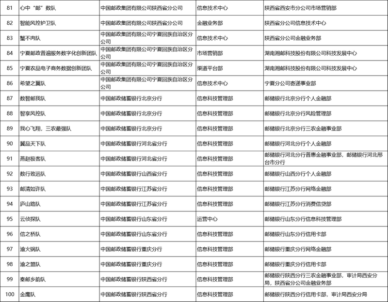 二是强化核心技术攻关。通过专项技术培训,加强科技人才能力的培育,围绕智能预测、风险防控、客户画像等前沿算法技术进行技术攻关,创新性解决邮政生产经营过程中存在的热点、难点问题,实现各业务场景的数据赋能能力。