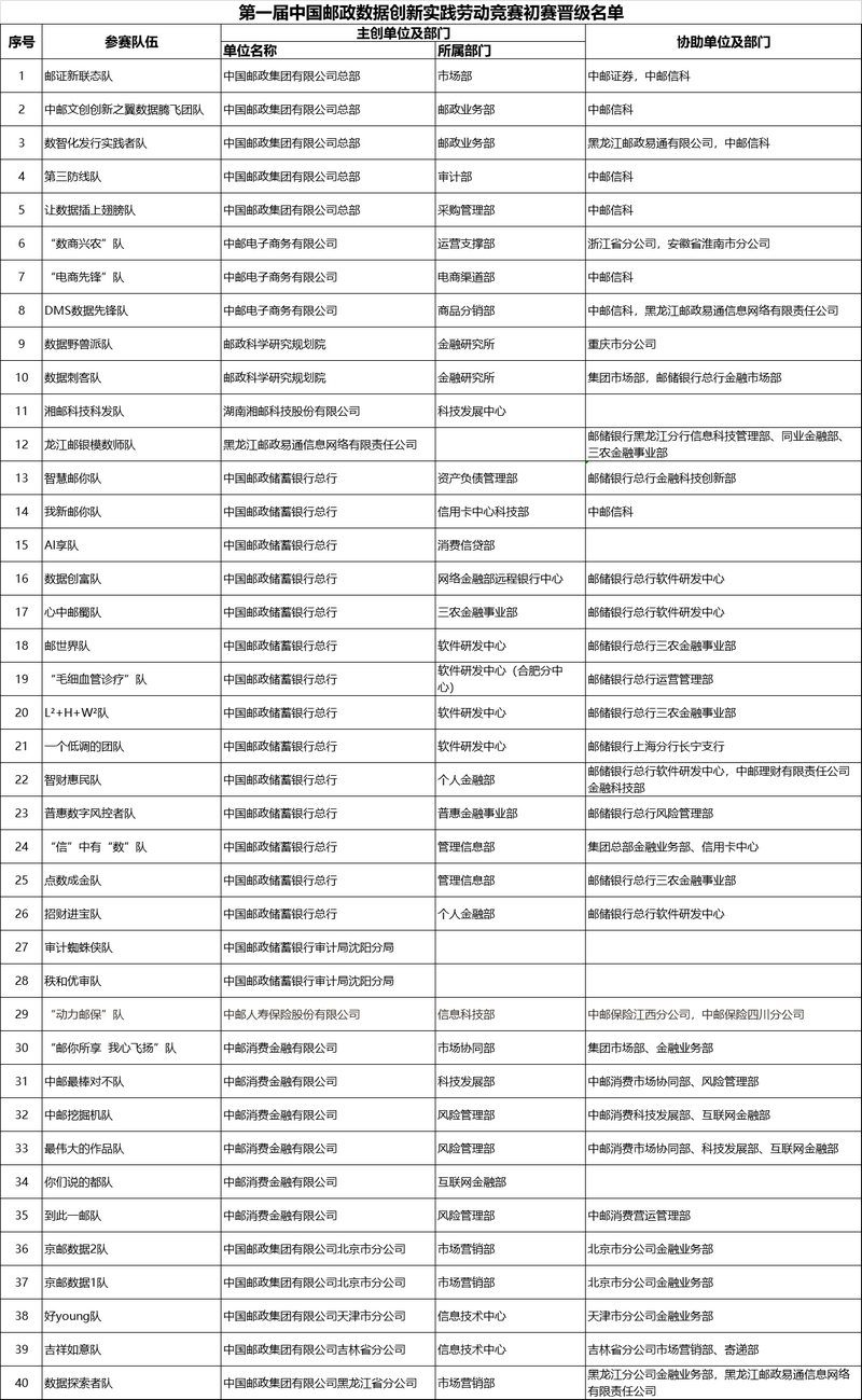数据创新实践劳动竞赛通过比拼大数据分析技术在实际业务场景的数据赋能效果,激发了各级团队的大数据工作热情。初赛系列赛事活动的组织推进,快速提升了参赛队伍数据分析、建模技术能力,拓宽了参赛队伍数据赋能思路,涌现出了一批能够反映业务经营实际、具有创新价值的研究课题,如直播选品、链式营销、风险预警等。参赛队伍以竞赛为契机开展了跨专业、跨单位、跨板块合作,深化了业技融合,在数据协同应用上实现了有益探索。各级数据队伍借助竞赛的平台优势,促进模型算法技术共享,发掘一批有创新、有价值、可落地的数据分析建模项目,形成规模效应,助力邮政数字化转型和高质量发展。