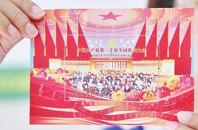 10月16日,中国邮政发行《中国共产党第二十次全国代表大会》纪念邮票一套2枚,小型张1枚。新华社发