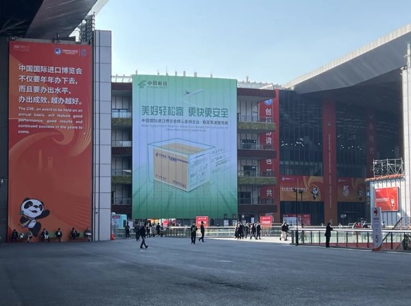 今年,在集团公司大力支持下,进博馆内的户外大牌、围栏看板、挂幅、电梯间楼层导览等地随处可见邮政LOGO。尤其在展馆内的中心圆广场1-3楼、北广场、论坛中心,都争取到了中心广告位,宣传效果颇佳。