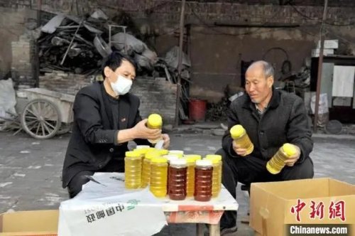 高文杰帮助当地农户销售蜂蜜。 山西邮政供图