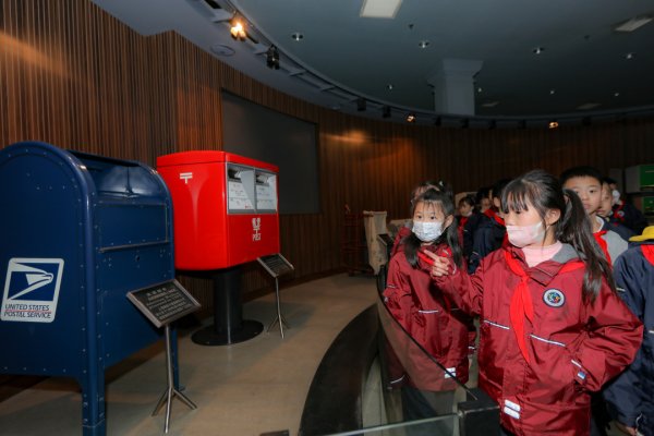 这里历经了海关邮政、大清邮政的几度沧桑,到新中国诞生邮政发展日新月异,开辟了发展新天地。参观过程中,少先队员们在博物馆讲解员老师的带领下近距离了解和体验邮政文化,对邮政的起源和发展历程、上海邮政早期党组织领导工人运动以及革命先辈为新中国诞生做出的贡献、各种邮用和邮运工具、具有深厚文化底蕴的邮票等都有了初步的认识。每位少先队员都认真聆听着老师们耐心细致的讲解,时不时拿出纸笔记录下参观过程中的点滴、认真填写研学手册,感受着邮政的独特魅力,爱上这属于中国文化的独特印记。