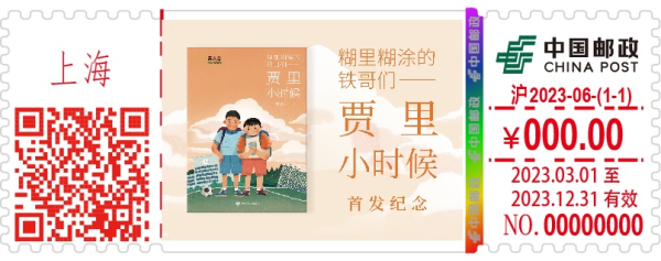 以信为名,由信传递。是信把这位大作家和全世界喜爱她的小读者们紧紧联系在一起。为了鼓励小读者们通过书信的方式把最新的阅读体验反馈给作家,上海邮政联合上海译文出版社,进行了一场用信建立读者和作家的沟通的“文艺复兴”。共同设计定制了《糊里糊涂的铁哥们——贾里小时候》纪念邮品——邮票、邮戳、异形明信片和纪念邮封。邮品选用由知名自由插画师Lisk Feng特别为新书设计的封面插图为底稿,主要凸显了小学时期就成为铁哥们的贾里和鲁智胜之间的友谊。