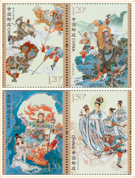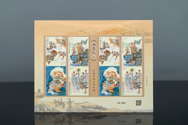 据了解,今天发行的《中国古典文学名著——<西游记>(五)》特种邮票图案名称分别为:狮驼岭降魔、比丘国伏怪、填平无底洞、天竺收玉兔,小型张为:五圣成正果。全套邮票面值为11.10元。邮票计划发行数量为850万套,版式二发行数量99万版,小型张计划发行数量为598万枚,另发行四方连邮票折一本,计划发行数量15万本。