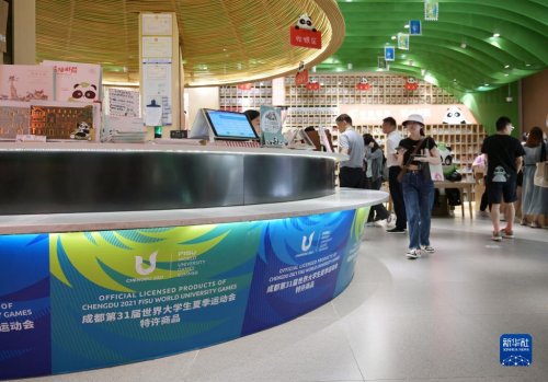 这是6月12日在熊猫邮局旗舰店内拍摄的标有“成都第31届世界大学生夏季运动会特许商品”柜台。