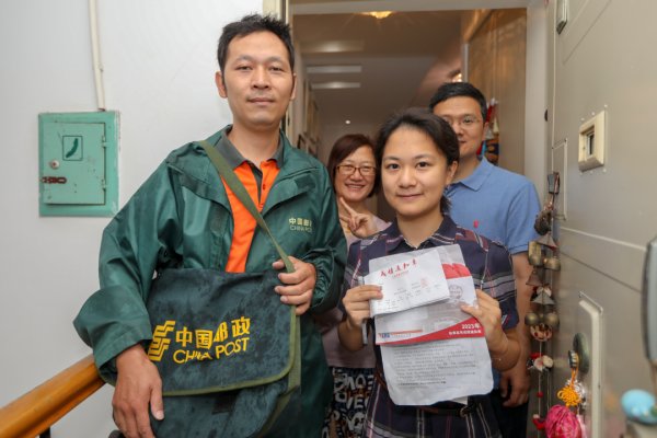 “太感谢邮政了!邮递员叔叔辛苦啦,下那么大雨还‘乘风破浪’特地给我送来!”面对镜头,刚刚拿到高考成绩单的谭同学难掩心中的欣喜:“虽然昨天就已经知道了自己的成绩,但拿到成绩单的这一刻真的好有仪式感啊!”谭同学兴奋地说道。