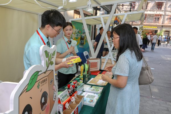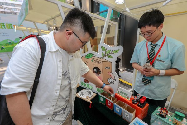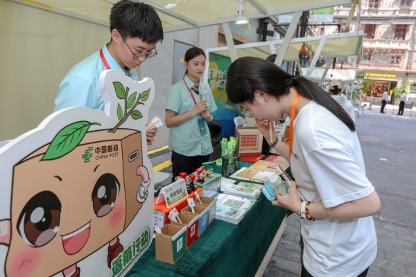 市集现场,邮政的服务点前人头攒动。市民游客通过参与垃圾分类小游戏、有奖问答和集戳盖章等方式,全景了解了中国邮政在发展绿色快递、促进快递包装绿色转型、快递包装箱环保使用等方面的具体举措,共同参与到可持续发展公益行动中。