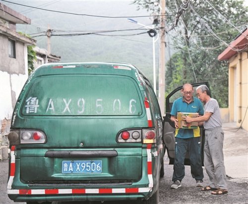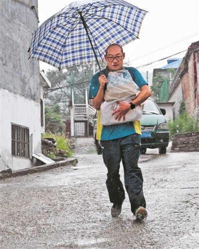 带着这些邮件,许桂明驾驶邮车冒着大雨在蜿蜒的山路上行进。“上午还是烈日当头,汗流浃背,下午就是瓢泼大雨,全身淋透,这在山区很正常。”许桂明说。停好车,撑起伞,许桂明把邮件紧紧抱在怀里,沿着小路跑进村里。10年来,他始终牢记“人民邮政为人民”的服务宗旨,走遍了这15个行政村的家家户户,与村民们相熟相知,遇到不方便外出购物的老人以及需要帮助的村民,他都主动帮助捎送生活物资。