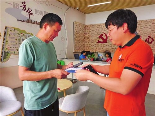 龚柱祺(右)将身份证邮件送到潜先生手中。