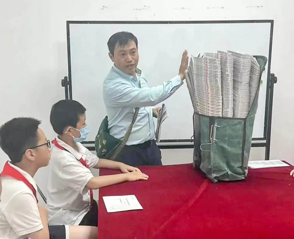 “同学们,你们知道嘛?其实报纸的分拣也是门‘技术活’。我们要把不同名称的报纸整齐分层堆放在邮包内,投递时还按用户实际订阅报纸准确无误的抽取投递。”叶其懂带领同学们熟悉报刊在内部处理过程中的操作规范,从“理论”到“实践”,与同学们分享自己工作的心得体会。