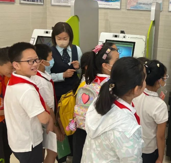 “数字技术是中国邮政提升核心竞争力、实现高质量发展的‘制胜之器’,近年来邮政网点也在朝着‘智慧邮局’转型。”在网点主任蒋丽的带领下,同学们到网点的自助服务区,体验自助服务的一触即达。
