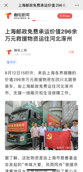 不久前,上海邮政驰援涿州灾区的报道被各大媒体纷纷转载,牵动着无数人的心。