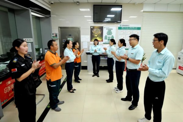走进兰里支局,宽敞明亮、简洁大气,厅内设立了客户等候区、VIP服务区、邮政业务区等多个功能分区。“各位优秀的伙伴,大家早上好!”“好、很好、非常好、越来越好!”早上七点四十分,随着晨会的开始,兰里支局一天的工作便拉开了帷幕。
