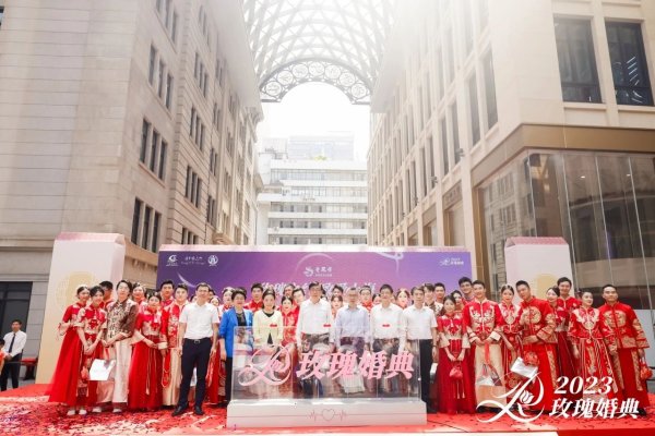 9月17日上午,作为上海旅游节的一项重要活动,2023年玫瑰婚典暨黄浦区结婚登记大型户外颁证仪式在外滩·中央广场隆重举行。