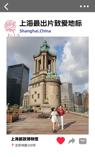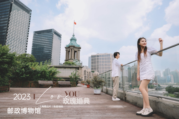 位于苏州河畔的百年上海邮政大楼作为本次活动中25个“上海最出片”的致爱地标之一,在当天也迎来了这25对新人,与他们携手共赴了一场浪漫的玫瑰之约。