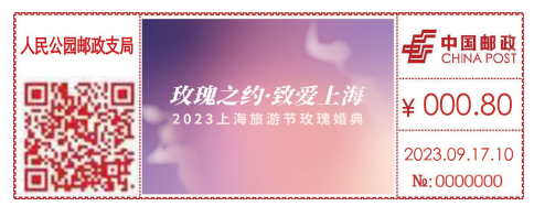 据了解,上海邮政作为本次活动的支持单位,特启用《玫瑰之约致爱上海》CX51 型邮资机宣传戳1枚,并邀请新人们参与到定制个性化纪念邮票的活动中,为本届玫瑰婚典增添了一抹靓丽的绿色。