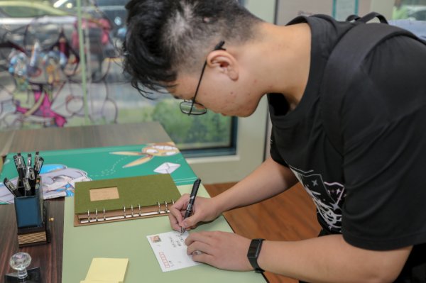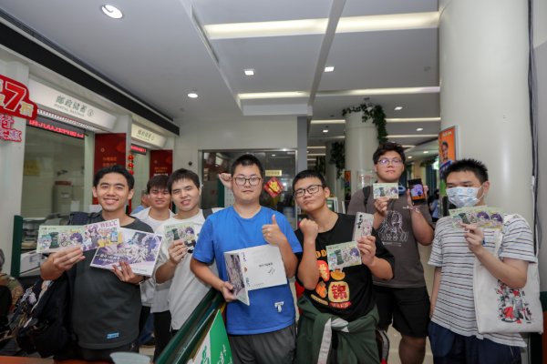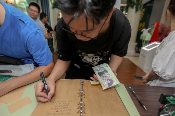 排在队伍最前的蓝同学是上海理工大学的一名大四学生,作为《崩坏3》骨灰级玩家的他从小也酷爱集邮。今天,他特地带来装有自己多年来收集的游戏题材类明信片的集邮册,并将刚刚获得的此次快闪邮局的明信片小心翼翼放入其中,“我就爱收集游戏类的明信片!今天算是圆了一个梦了!谢谢上海邮政!”面对镜头,蓝同学显得无比满足。
