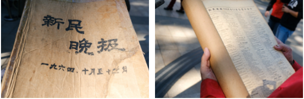 教师陆宪础兴致勃勃地从徐汇区的家中赶来,受在上海商务印书馆工作的父亲影响,陆老师全家人都非常喜欢看报。他为我们展示了上世纪60年代的新民晚报合订本、1990年的《上海乘车指南》以及《十五贯》等被周围读者称为“古董级别”的刊物。