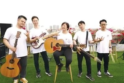 80后主音吉他手刘国辉在乐队成立之初就加入了,那时的他还是一名投递员。“读大学时跟同学一起玩过吉他,毕业后大家奔赴各地就业,再难聚在一起玩音乐,很遗憾!”刘国辉说,公司组建乐队,让他找回了读书时代的记忆,工余生活有了新的寄托。