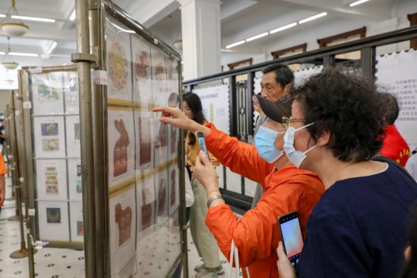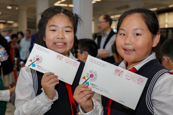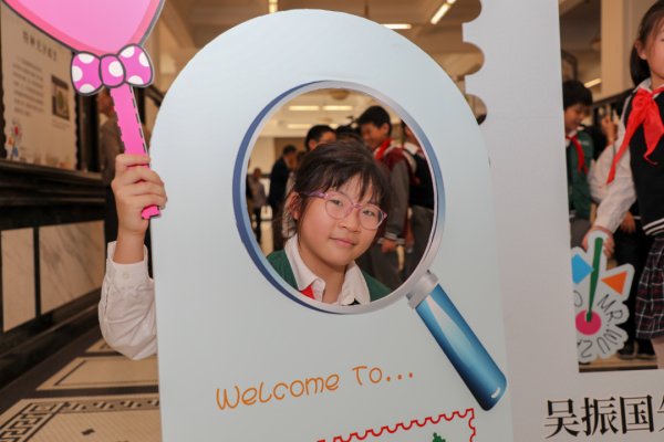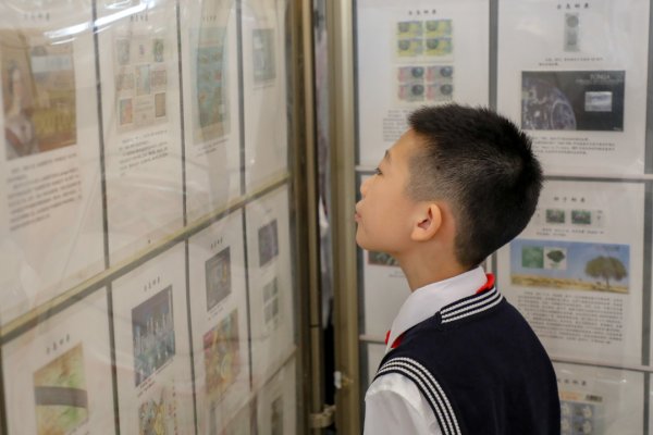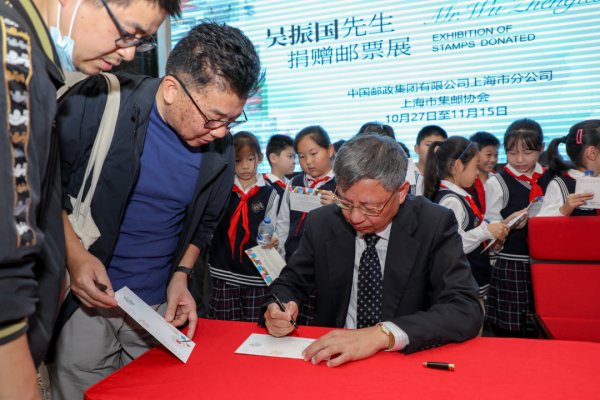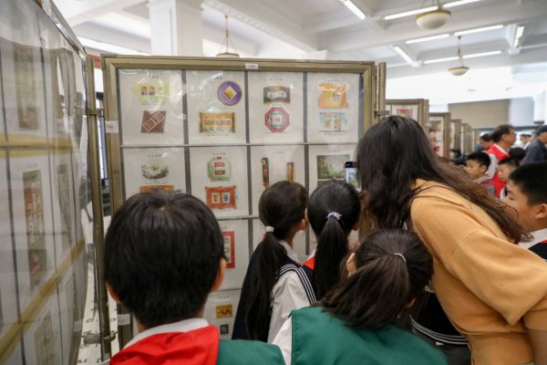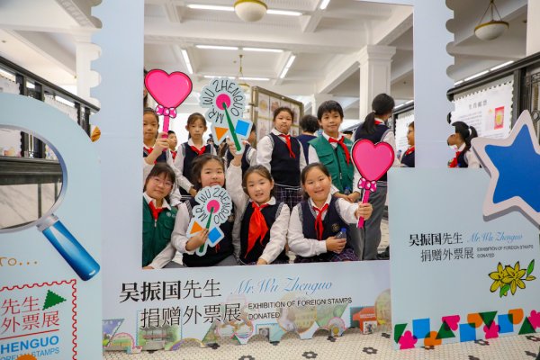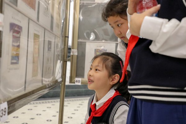 △上海交通大学附属黄浦实验小学的师生们特来参观本次邮展