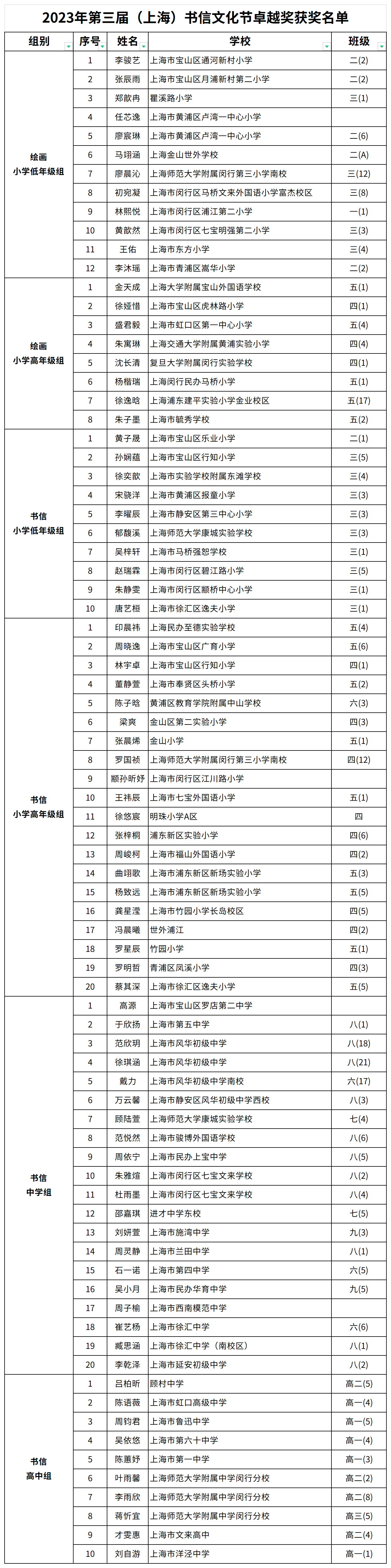 在上海市教委的倡导和大力支持下,全市中小学校积极参与本次活动。据了解,活动总计收到了1.1万多份稿件,经过专家评审后共评选出卓越奖80名、优秀奖220名,一幅幅栩栩如生的画作、一句句怦然心动的寄语、一封封触动心灵的书信,充分描绘出我们当代青少年对尊敬的人抒发的情感、对过往美好记忆的思虑和对未来的无限憧憬。