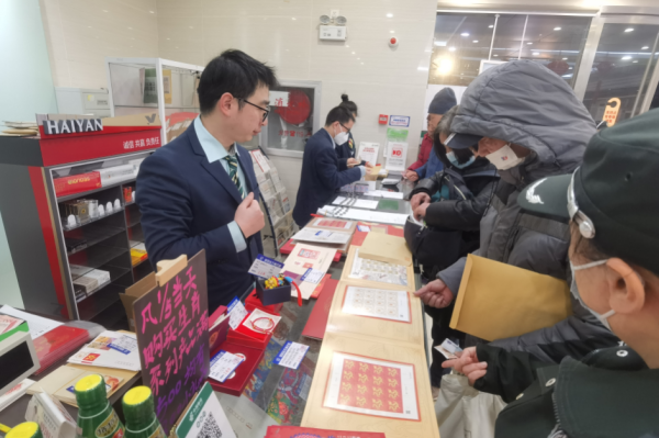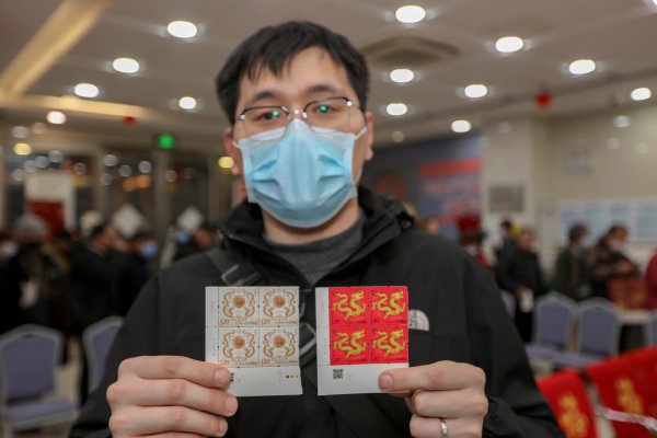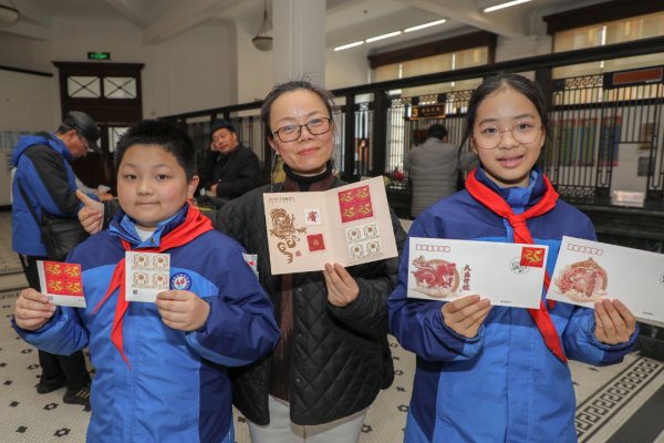 据了解,上海与“龙”相关的邮政网点资源较多,上海市邮政分公司已将龙华邮局(徐汇)、龙源路邮局(松江)、龙门路邮局(黄浦)、古龙路邮政所(闵行)成功申报加入全国一百个龙年原地邮局之列,并同步推出龙年集戳本、原地封等新品,体现生肖文化与邮文化的融合。一大早,全市86个指定邮政网点内外热热闹闹,邮迷们不畏低温,热情高涨,有序排队。作为龙的传人,大家都对今年发行的龙年生肖邮票格外关注。