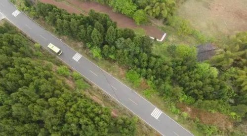 公交车行驶在乡镇道路上。(摄影:何佳林)