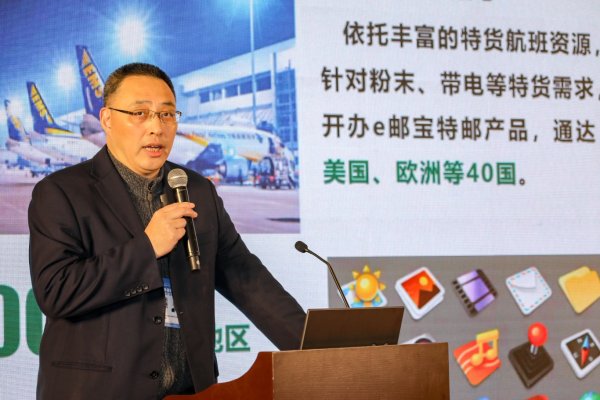 在上午的开幕仪式上,中国邮政集团有限公司上海市分公司国际业务分公司总经理陈新作为首场演讲嘉宾,作了主旨演讲,副总经理李禕珺向主办方、与会观众介绍了上海邮政跨境物流解决方案。