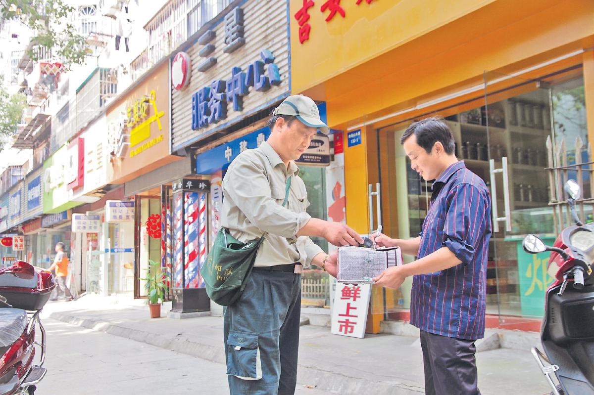 吉州区鹭洲投递部揽投员周东亮上门为客户收寄邮件。 □郭晓燕 摄
