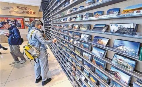 游客在“天上西藏”主题邮局布达拉宫店选购明信片。