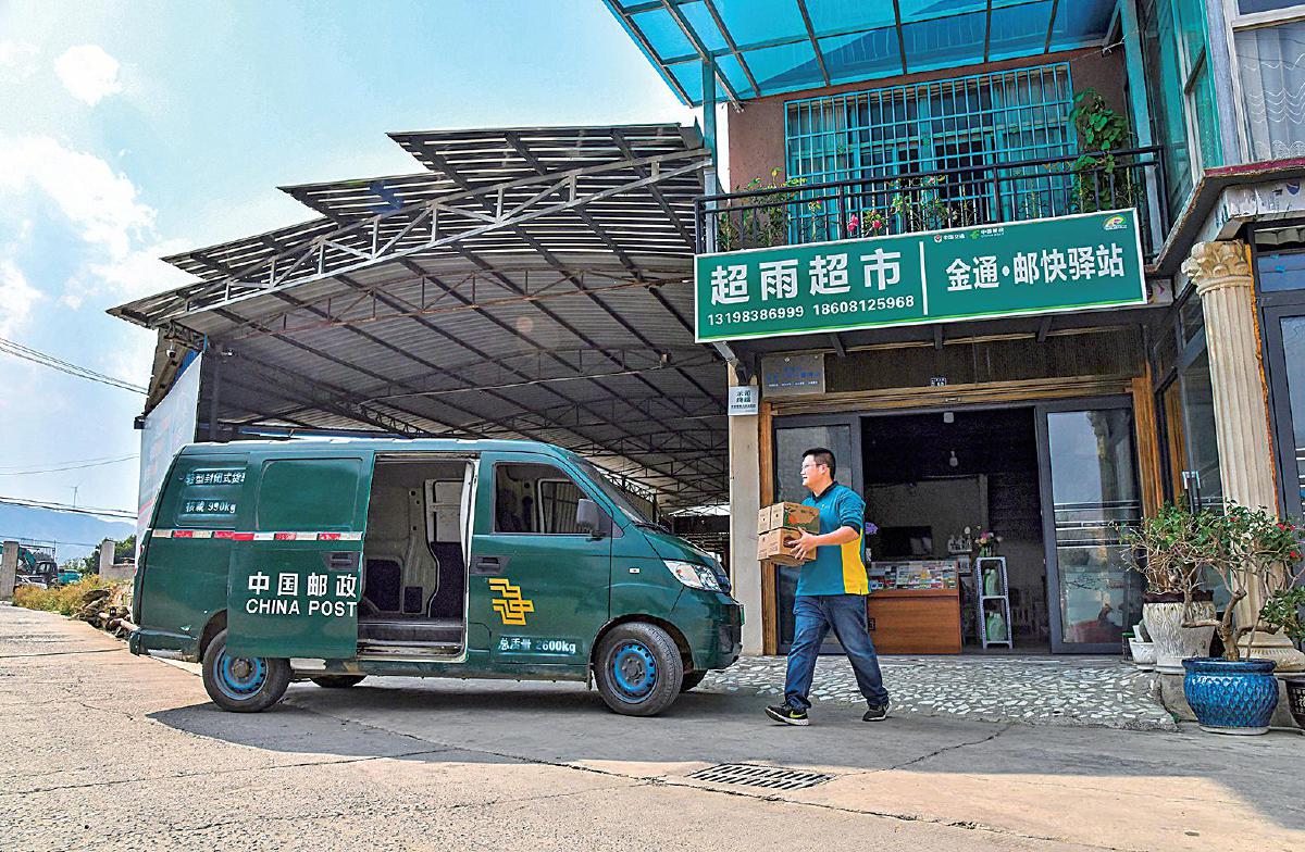 肖平非常高兴,在邮政的帮助下,她的超市实现了提档升级,成为村级综合便民服务站。店招、打印机、货架都是邮政提供的,超市里也增添了不少邮政惠民商品。更重要的是,超市作为村里的邮件收寄点,取邮件和寄物品的村民越来越多。来自全国各地的邮件在这里集散,也汇聚起源源不断的客流。