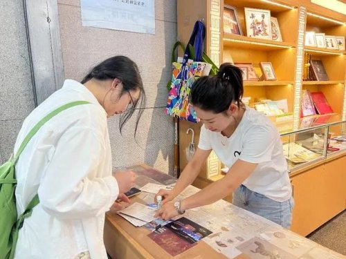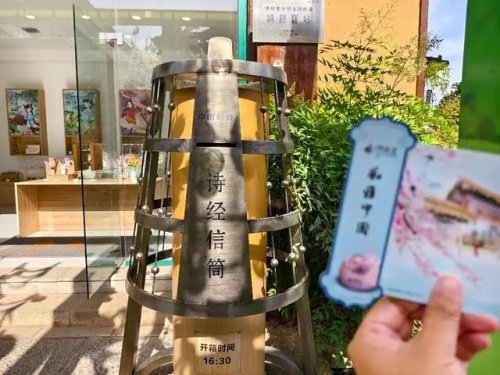 诗经里小镇“孙阳”“望舒”的经典IP形象,是诗经驿站主题邮局的醒目地标。5月15日上午,记者打卡诗经驿站,遇到许多游客在这里邮递信件、明信片,选购各款诗经纪念封、主题邮票,通过诗经邮筒遥寄祝福,从诗经里漫邮世界 。