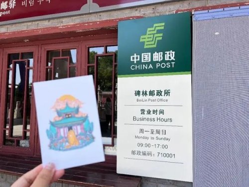 碑林邮驿主题邮局,藏身西安碑林博物馆内,几乎是西安面积最小的主题邮局,它有西安首个主题特色邮筒,碑石的形状刻有象征吉祥的云纹。自2016年营业以来,承担信件、包裹、汇兑、印刷品等邮政普遍服务业务的同时,集章拍照、文创选购……小小主题邮局“五脏俱全”。也是西安第一个主题邮局。