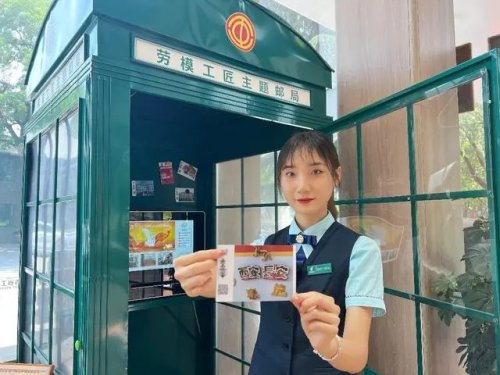 在陕西劳模工匠主题邮局,12款明信片由窦铁成、徐立平等12位劳模工匠的照片和签名制作而成。声纹明信片不仅可以体验传统书信文化的打卡印戳邮递,还能将声音转译成声纹随明信片邮递。专程带孩子前来的游客潘佳说:“我选择了这一套蓝色的明信片,上面都是每一位大国工匠的详细介绍。平时带孩子在电视上也看大国工匠的纪录片,但总觉得画面一闪而过记不住。实体的明信片打上当天的戳记,一张一张地将故事讲给孩子听,多年后再回看,都会是难忘的回忆。”